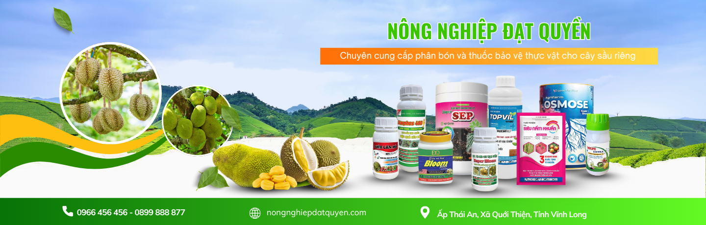 Với nhiều năm kinh nghiệm đồng hành cùng nhà vườn, chúng tôi hiểu rõ những khó khăn bà con thường gặp phải trong quá trình trồng sầu riêng: sâu bệnh kháng thuốc, đất đai bạc màu, chi phí sản xuất cao và năng suất không ổn định. Chính vì vậy, Đạt Quyền luôn tập trung lựa chọn, cung cấp những dòng phân bón chuyên dụng cho sầu riêng và thuốc bảo vệ thực vật thế hệ mới, có công nghệ tiên tiến, hiệu quả vượt trội và đặc biệt chưa bị kháng thuốc. Sản phẩm của chúng tôi không chỉ giúp cây sầu riêng phát triển khỏe mạnh, tán lá xanh tốt, ra hoa đậu trái nhiều mà còn nâng cao sức đề kháng, giảm thiểu rủi ro do sâu bệnh gây ra.
